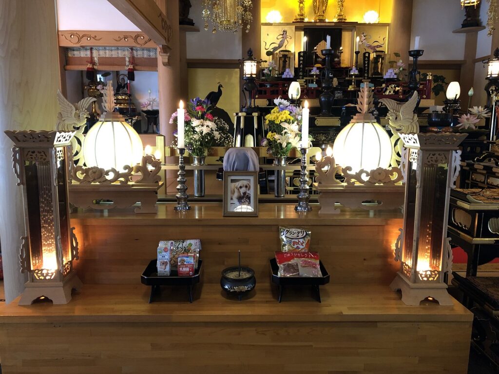 ペットのお墓に納骨の前には本堂内において極楽浄土へ送るお勤めをいたします。